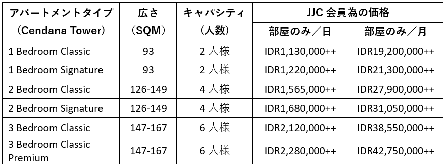 ※ハイシーズンやBlackout Datesにより上記割引が適用されない可能性もありますので、必ず事前にアパートメント担当者までご確認ください。