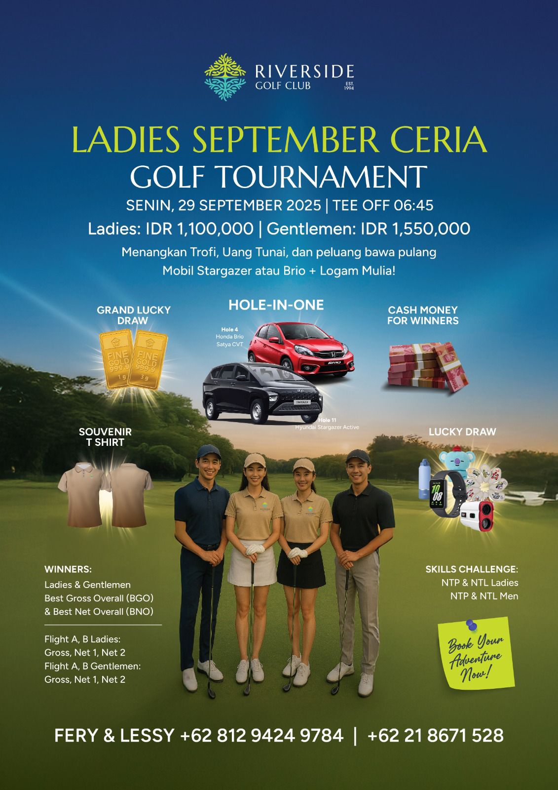私たちは、Jakarta Japan Clubのすべての会員の皆様を、リバーサイド・ゴルフクラブにて開催される「Ladies September Ceria ゴルフトーナメント」へご招待申し上げます。本トーナメントは、美しい環境の中でゴルフを楽しみながら、魅力的な賞品を競い合う絶好の機会となっております。